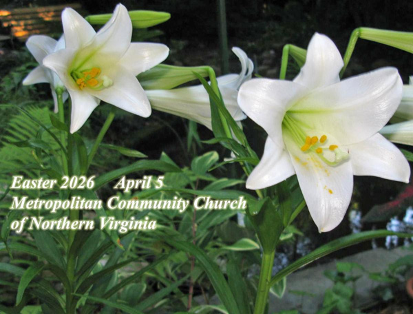 Join us in-Person Sunday at 11 AM-ish at the Metropolitan Community Church of Northern Virginia, or live-streamed on our FaceBook page.